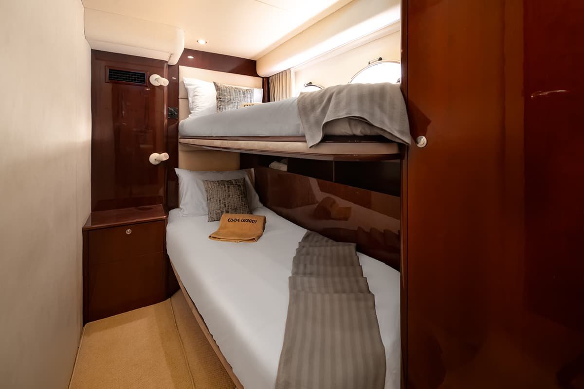 Discover the Clyde Legacy, a prestigious 58ft Princess Sport Yacht (Princess V58) tailored for the ultimate Phuket yacht charter experience. Fresh from a 2025 refit, this vessel combines high-performance cruising with modern luxury, capable of speeds up to 22 knots—perfect for reaching Phi Phi, Krabi, and the Similan Islands faster, giving you more time to explore.